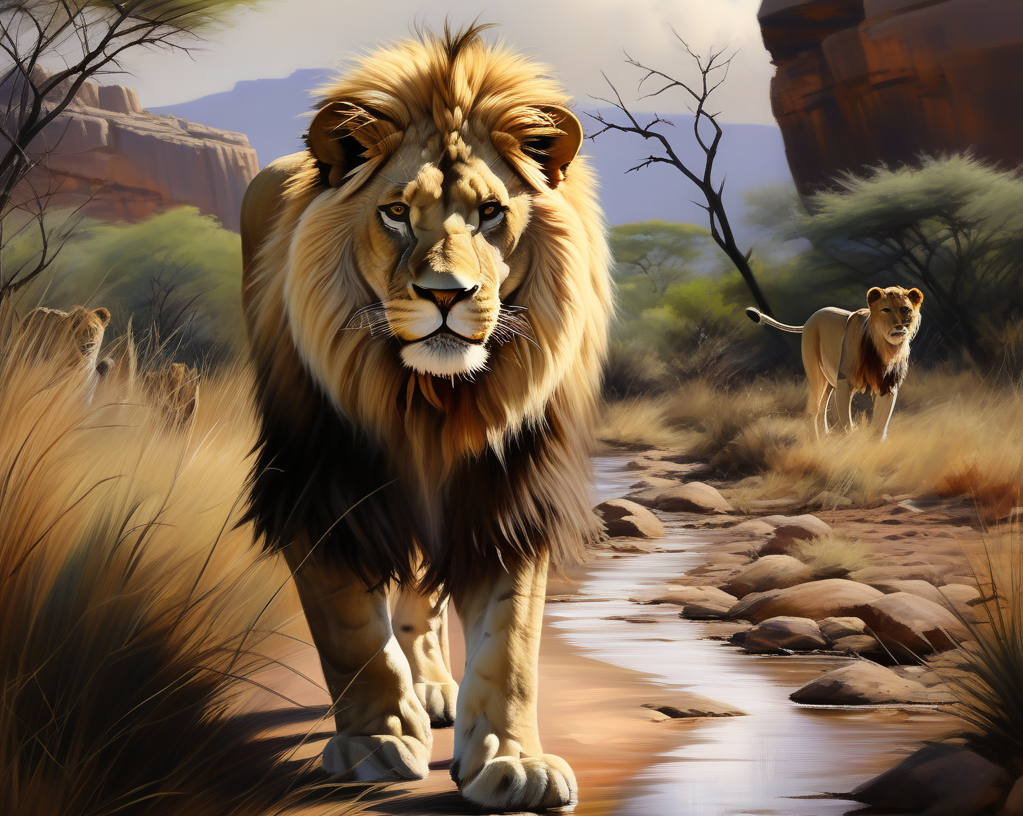 I have no idea how many times I had stopped to listen and observe nor how far I was from the Rangers house, but judging from the position of the Sun it must have been close to midday. I took a swig from my water bottle, which was now almost empty, as I reflected on the sightings and encounters thus far on my outing. Kudu, Impala, Warthog, Puff Adder, Elephant, Wildebeest………I decided that it was time to head back. Looking down the pathway towards home I saw a movement to the left in an opening the lead down towards the track cut as a firebreak, then another, and another, for a moment I thought it was Shumba, Lady and Jane but the appearance of two large male lions and then followed by three adult females made it obvious that this entire pride was what Oom Johan was looking for. The pounding of my heart and scent of adrenaline pouring through my system must have alerted them to my presence and they moved off at a brisk pace.